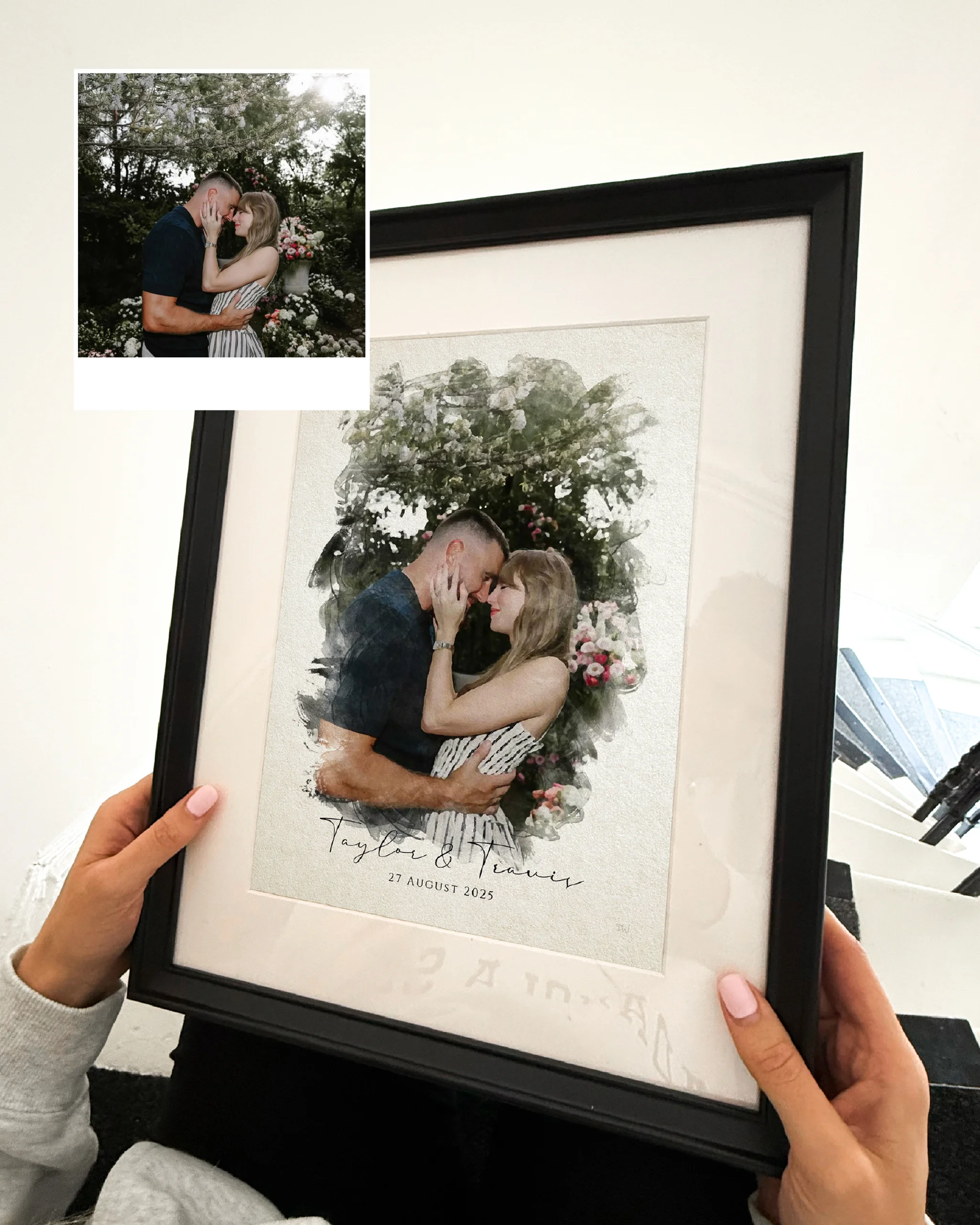 Clear, high-resolution images from your phone or camera work best. Outdoor shots or well-lit portraits with good contrast tend to look especially stunning in our watercolour style. If you’re unsure, feel free to send us your photo and we’ll advise before you order.